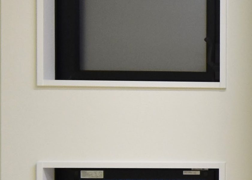 通常ならガラスが入るところですが、グレーのパネルが入っています。